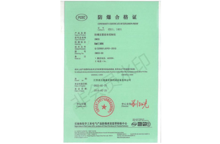資信等級證書裝車鶴管適用于汽、煤、柴油,液態(tài)化工介質汽車、頂部裝卸車。裝車鶴管可以分為三類,分別是:全自動鶴管、氣動帶手動鶴管、手動鶴管。裝車鶴管還有三個特殊功能,分別是:氣相回收,伴熱保溫,變形產(chǎn)品。 鶴管操作規(guī)則流程: a.鶴管在裝車前,操作人員需要對油庫油臺設施的完好性進行檢查,檢查靜電接地線,確保油車主梁上緊固有效。 b.靜電接地線應在卸油前連接好;按規(guī)定做好穩(wěn)油靜置工作 c.將溢油探頭放至油缸口安全高度位置 d.在鶴管裝卸油結束后,需將尾管里的余油、氣體排空后才能提出放置原來位置。<了解詳情>